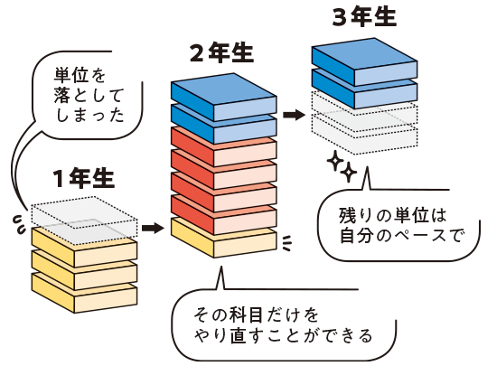 単位を取得するには、①レポートを提出し、②スクーリング(対面授業)を受け、③テスト(単位認定試験)をクリアしなければなりません。